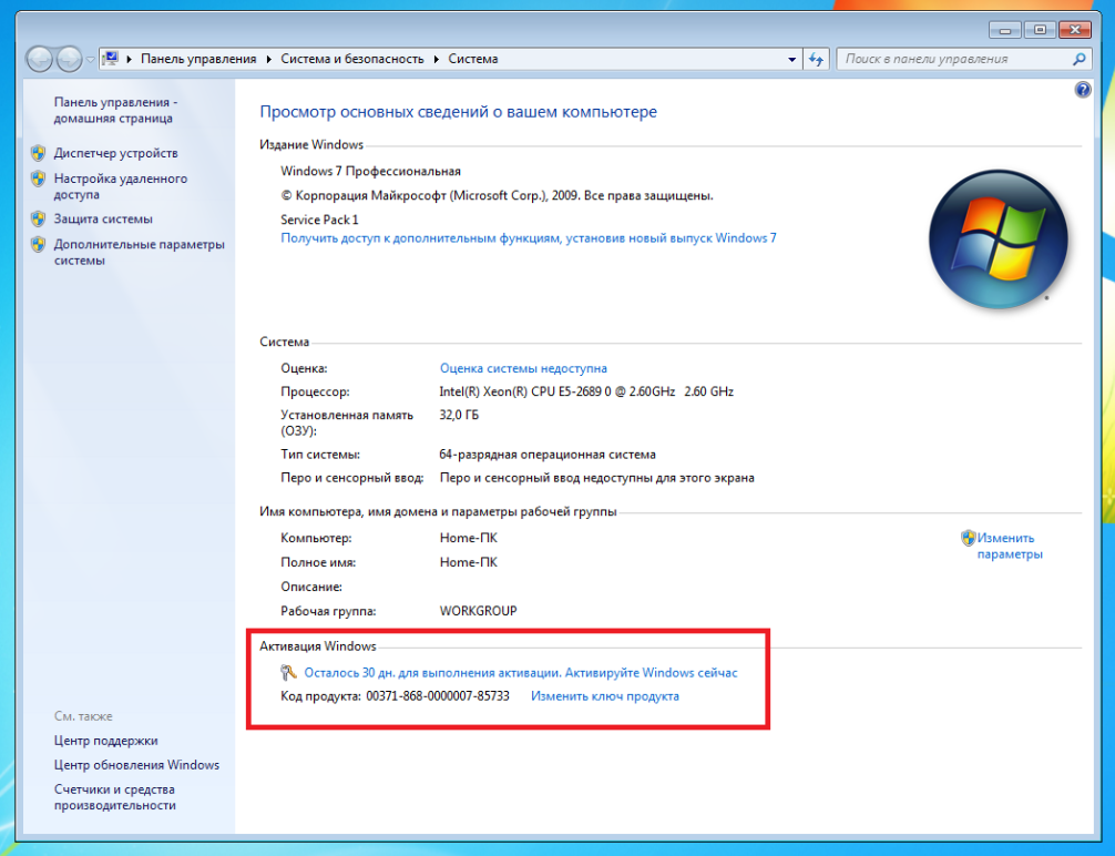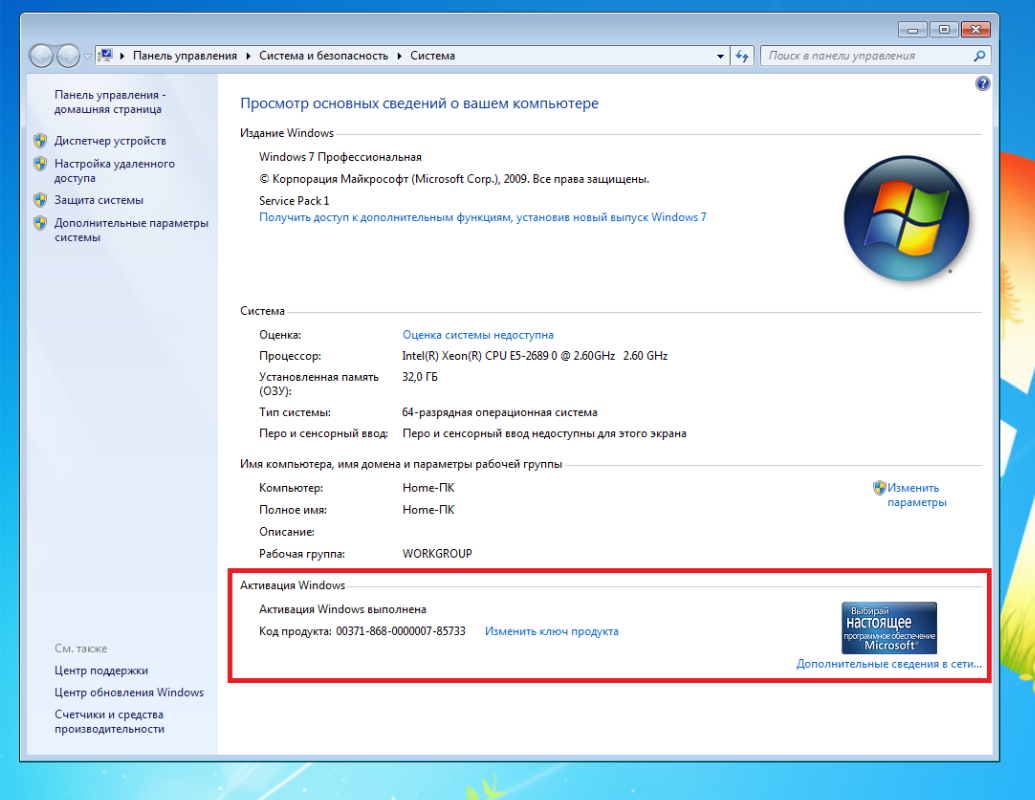 - Теперь если заново открыть свойства системы, Windows окажется активированной: